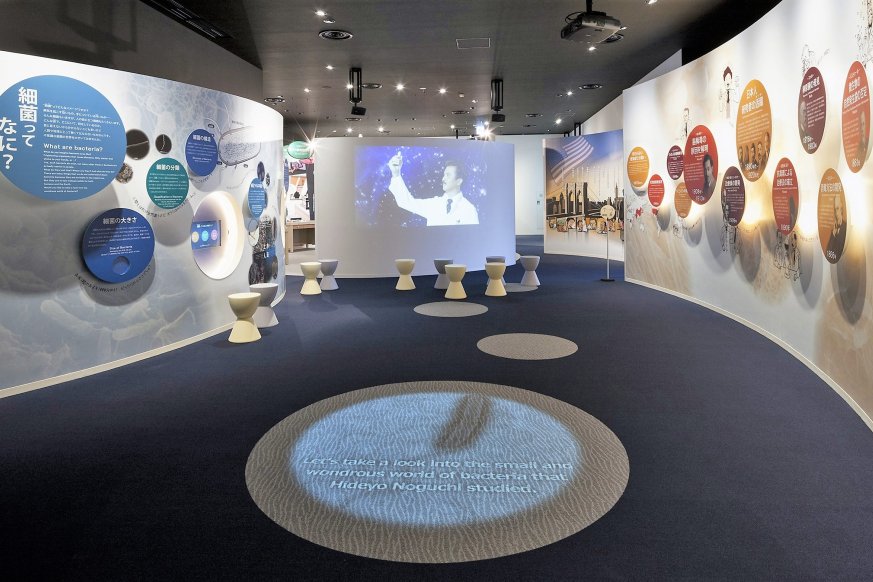 1876(明治9)年、福島県猪苗代に生まれた野口英世は1歳半の時に左手に大やけどを負い不自由となりましたが、家族や恩師の支援によりその苦難を克服しました。左手の手術により医学のすばらしさを感じ自らも医学の道を志し、アメリカロックフェラー医学研究所を拠点に世界で活躍する細菌学者となりノーベル賞の候補にも挙がりました。しかし、1928(昭和3)年、西アフリカ・アクラで黄熱病の研究中に感染し亡くなりました。